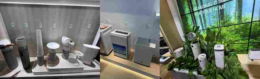 今年AWE最大的感受是节奏快,相比去年更多企业选择在自家展台开直播卖货,在24年行业高增长的背景下,今年头部品牌反而更加克制,TOP5品牌无一参展。而从品类发展角度,长远来看空气净化器也在正面临挑战,越来越多的品牌将净化、加湿融入空调(中央空调、新风空调、移动空调等)、新风系统、两季产品中来,使消费者在购买时有更多空气处理类的设备可选,对净化器形成了一定冲击。但在2025年,我们仍能通过AWE看到行业的几点新变化。