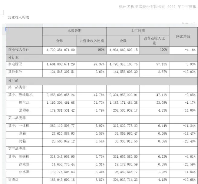 2024年上半年的数据却让人大跌眼镜。吸油烟机收入下滑2.85%,燃气灶收入也微降1.17%。这看似温和的跌幅,实则暗藏危机。