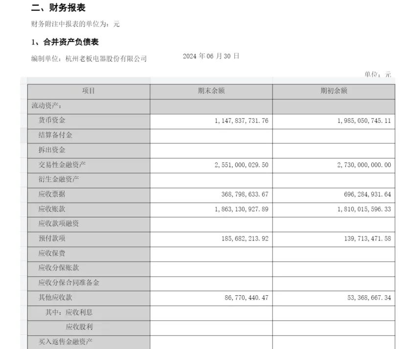 随着房地产行业的下行,这种依赖模式的风险逐渐暴露。截至2024年6月末,老板电器的应收账款余额高达18.63亿元,应收票据也有3.47亿元,资金压力巨大。