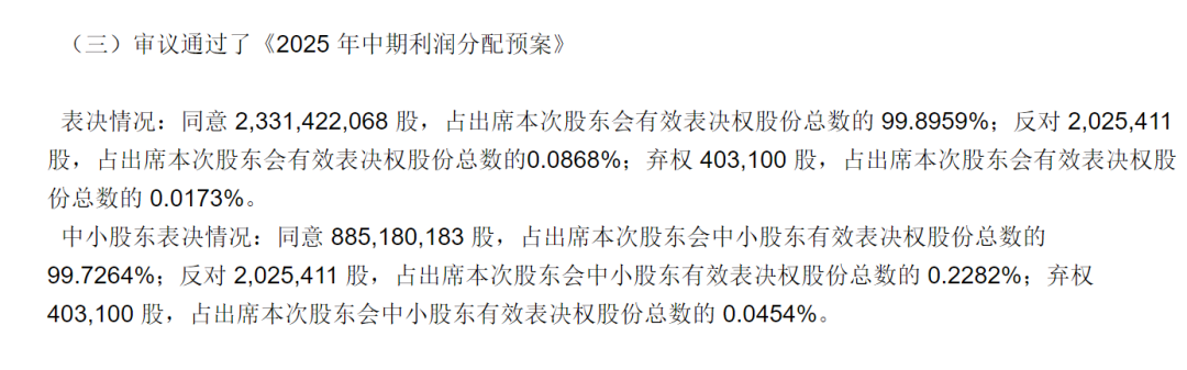格力11月25日发布公告披露,对2025年中期利润分配预案股东们进行了表决,共有2331422068股同意,占出席本次股东会有效表决权股份总数的99.8959%最终本次股东大会通过了《2025年中期利润分配预案》。