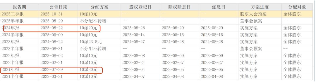 2025年格力延续了2024年 “中期+年报”的双重分红模式。其中中期分红55.85亿元,已经通过预案,以格力近年惯例,年报分红则推出每10股派20元的预案,预计届时派发111.7亿元,2025年全年预计分红总额 167.55 亿元,该年报分红预计在2026年一季度完成除权除息。