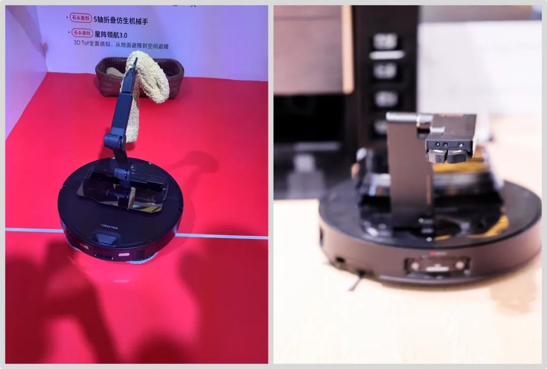 从吸尘器弯折,到洗地机躺平,再到扫地机器人固态雷达、伸缩雷达应用,在低矮空间场景的探索上,无论是扫地机还是洗地机,都实现了完美的应用,此次AWE我们也看到了各家的新产品都在继续在场景层面的进一步探索,例如,此次石头和追觅共同带来了机械手新形态产品,相较于多合一形态的吸尘器或是洗地机,这是扫地机器人首次将清洁从二维场景拓展到三维,为未来扫地机器人在家庭立体清洁空间的探索上迈开了第一步。